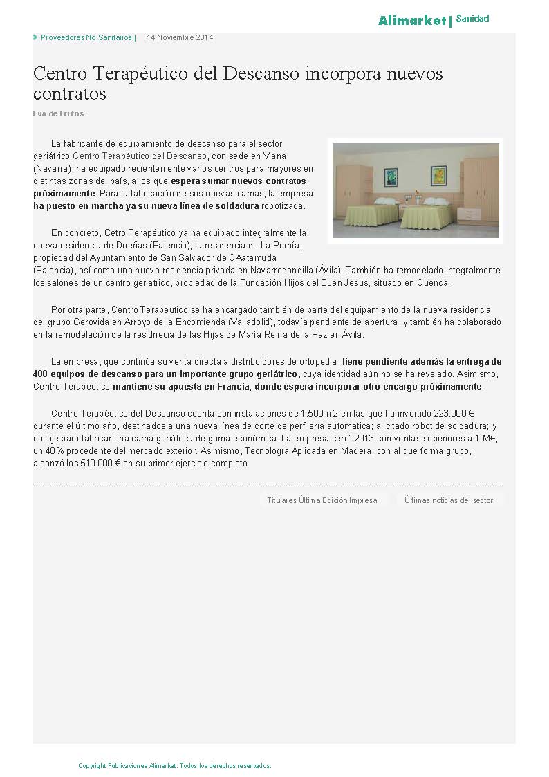 Nota de Prensa. Publicación en Alimarket